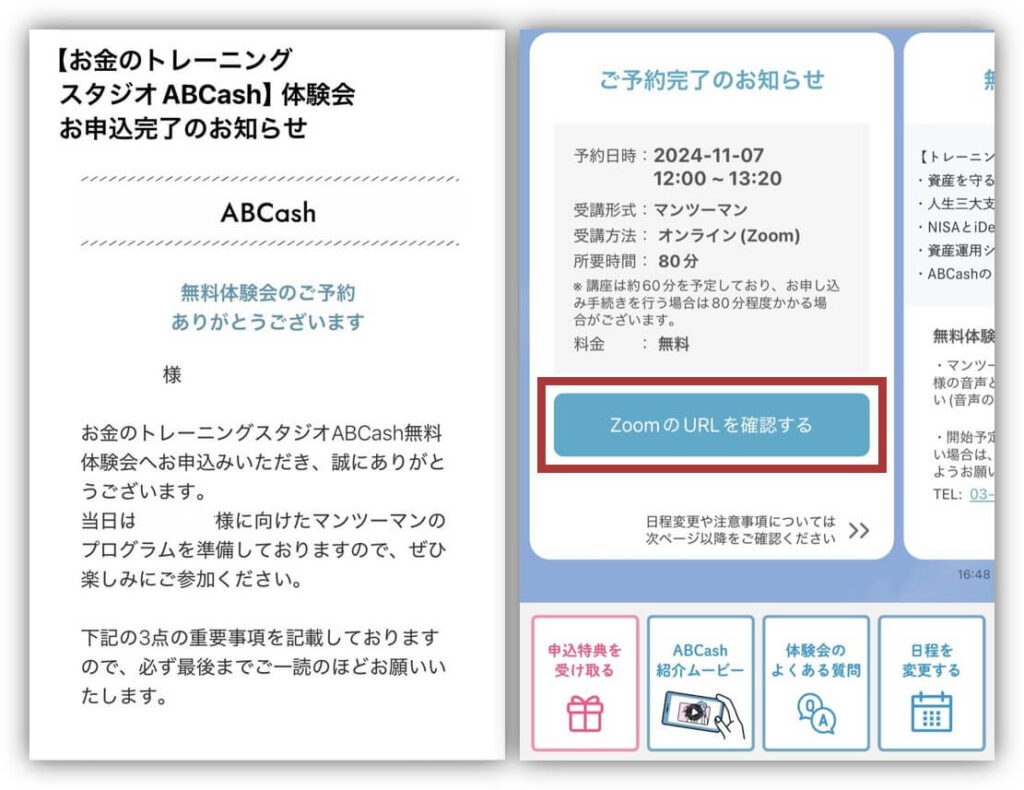 体験当日は、公式LINEに送られてきたメッセージの「ZoomのURLを確認する」から無料体験に参加しましょう✊🏻