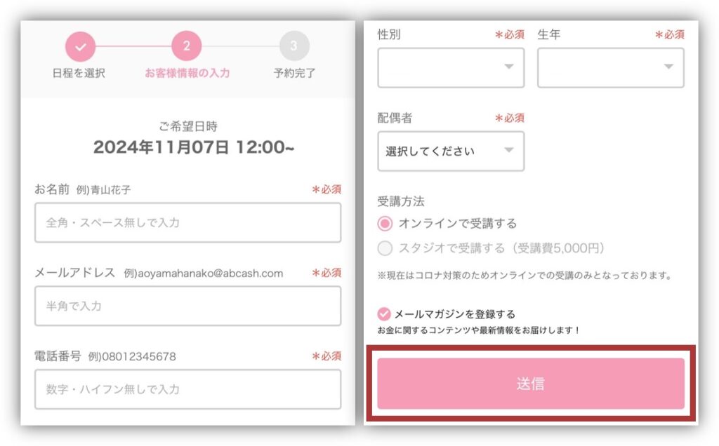 続いて、名前やメールアドレスなどのお客様情報を入力していきます!