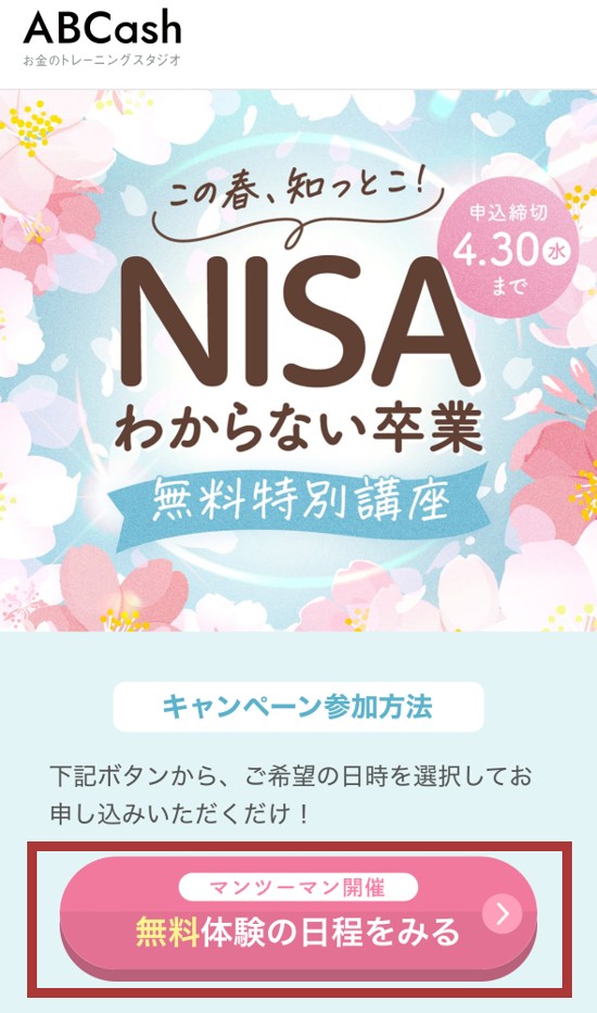 こちらをタップして、「ABCashの無料体験の予約方法」を確認する!