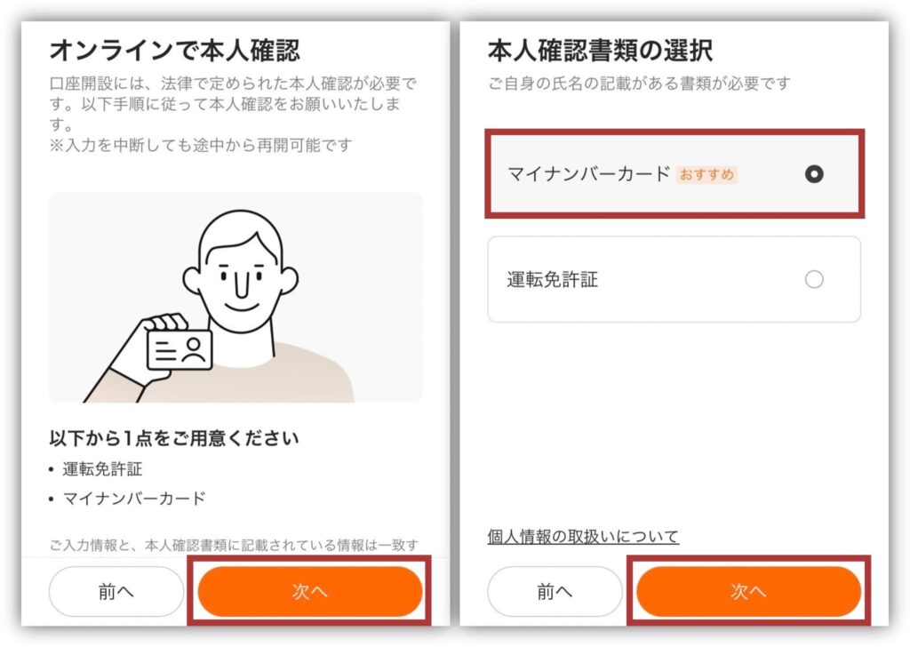 本人確認書類を選択して「次へ」に進みましょう✊🏻