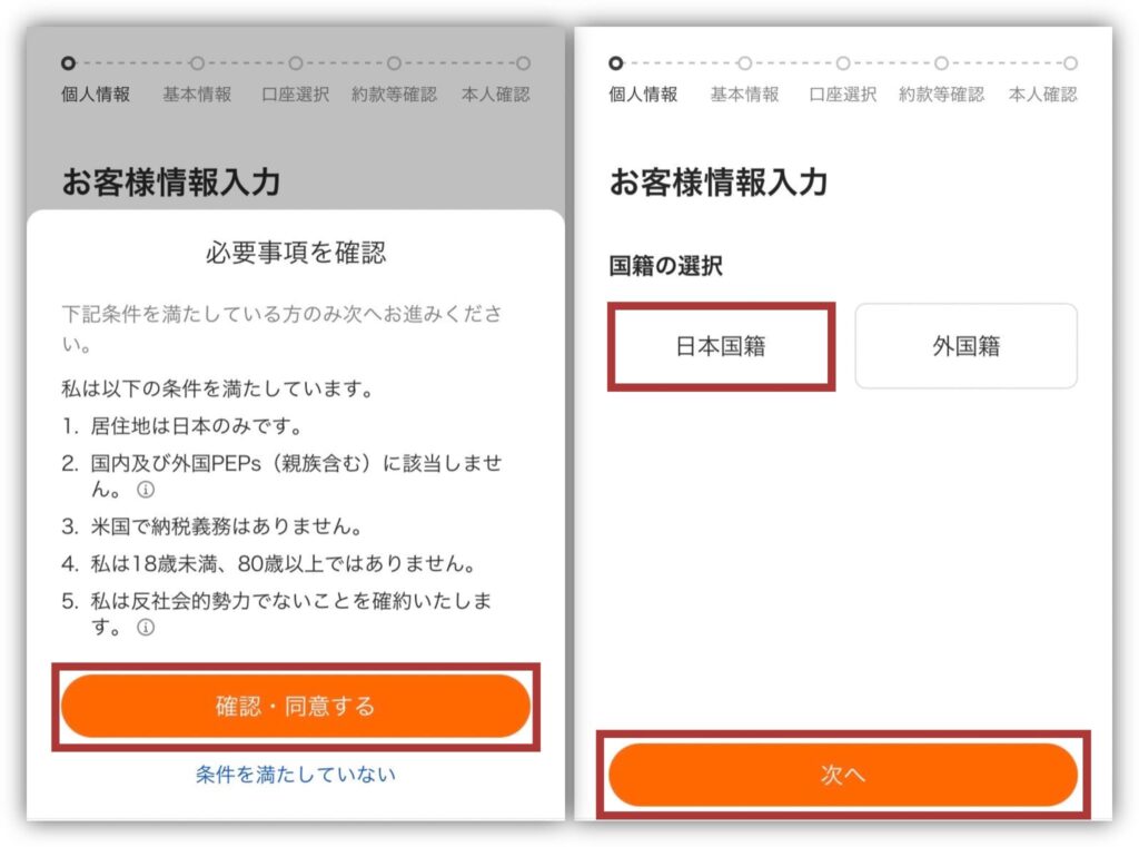 国籍を選択して「次へ」に進みましょう🤍