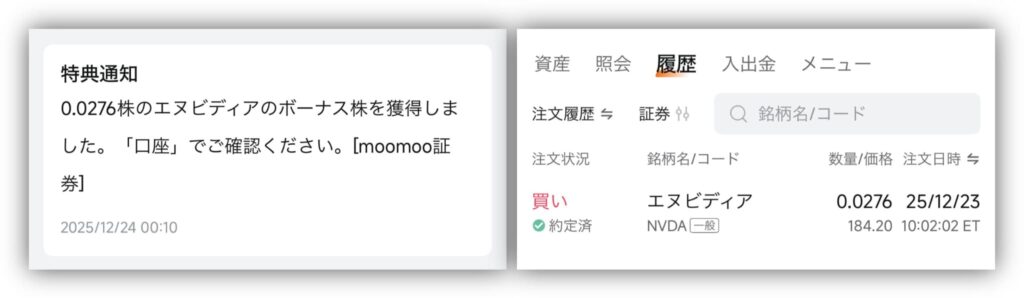 私も過去に、moomoo証券のキャンペーンに参加して、実際に「NVIDIA(エヌビディア)」の株をもらえました💕
