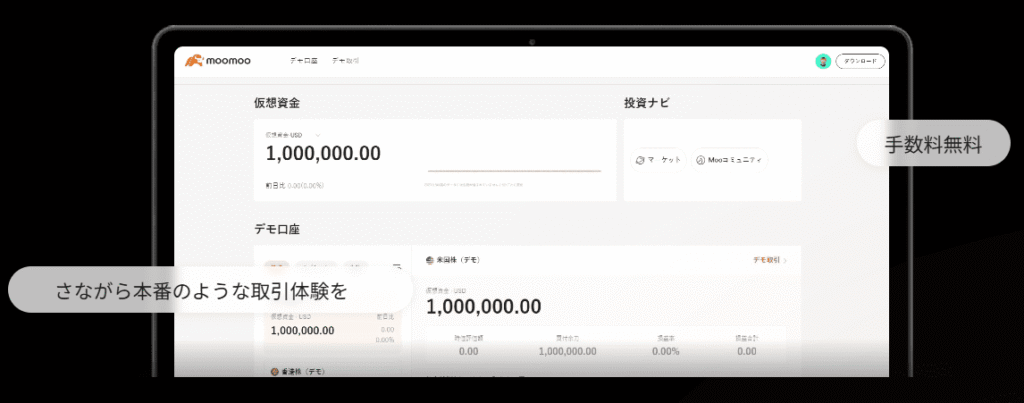 そんな初心者さんのために、moomoo証券には「デモ取引体験」ができる機能があります!