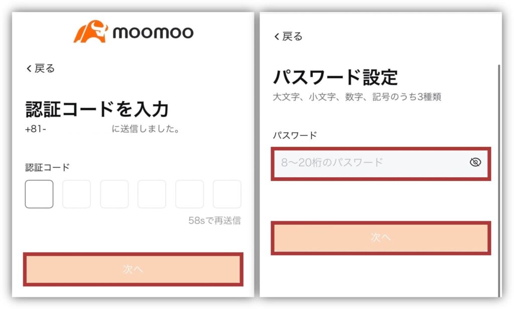 パスワードの設定をして、もう一度「次へ」をタップします。