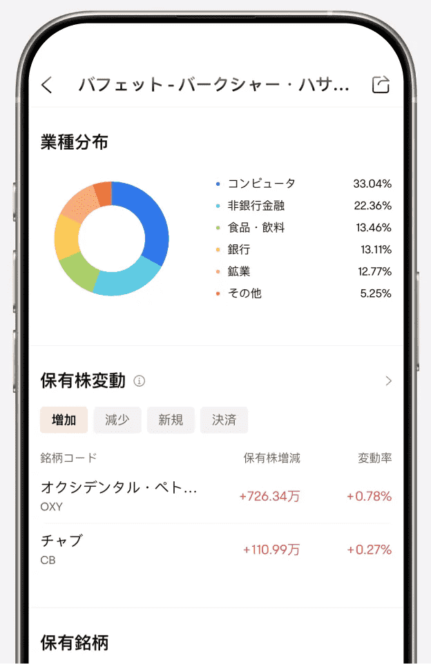 この中でも注目の「大口投資家や機関投資家の動向」では、投資の神様ウォーレン・バフェット氏が持っている銘柄や、売買した銘柄が丸わかり✨