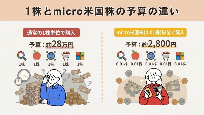 micro米国株なら、今まで株価が高くてなかなか手が出せなかったGAFAMのような人気の銘柄にも、投資できるようになります✨